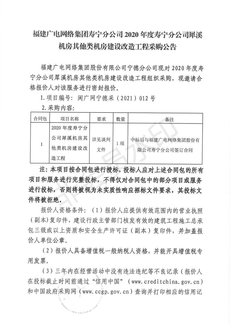 壽寧分公司犀溪機房其他類機房建設改造工程采購公告
