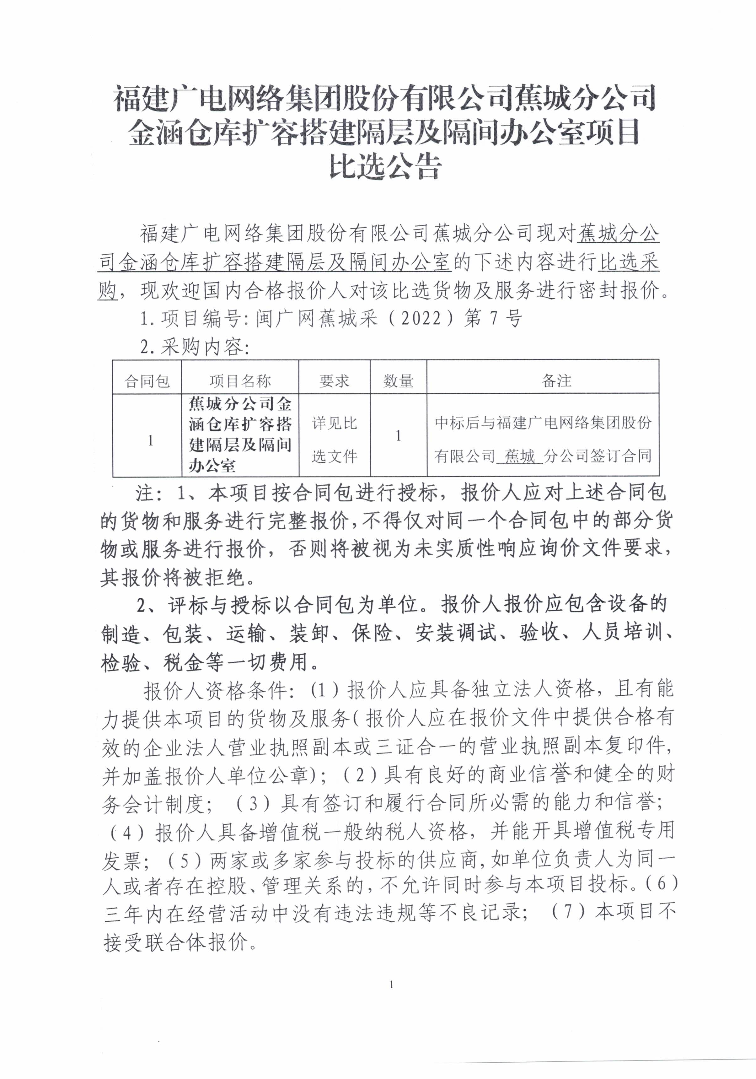 蕉城分公司金涵倉庫擴容搭建隔層及隔間辦公室項目比選公告