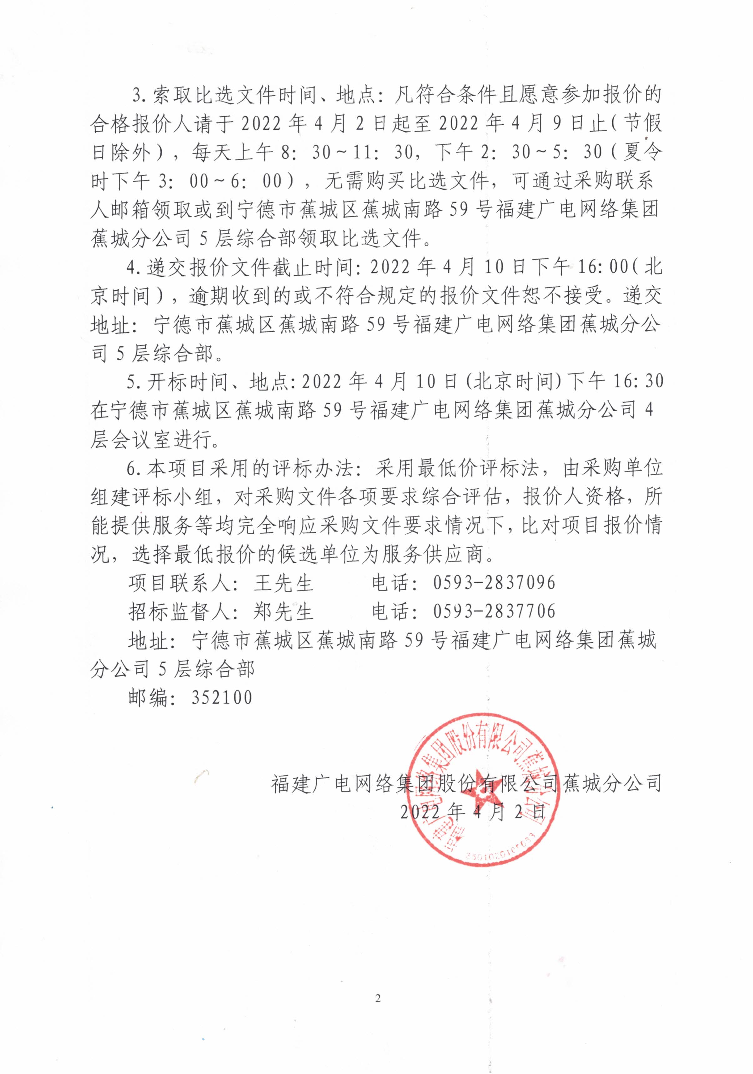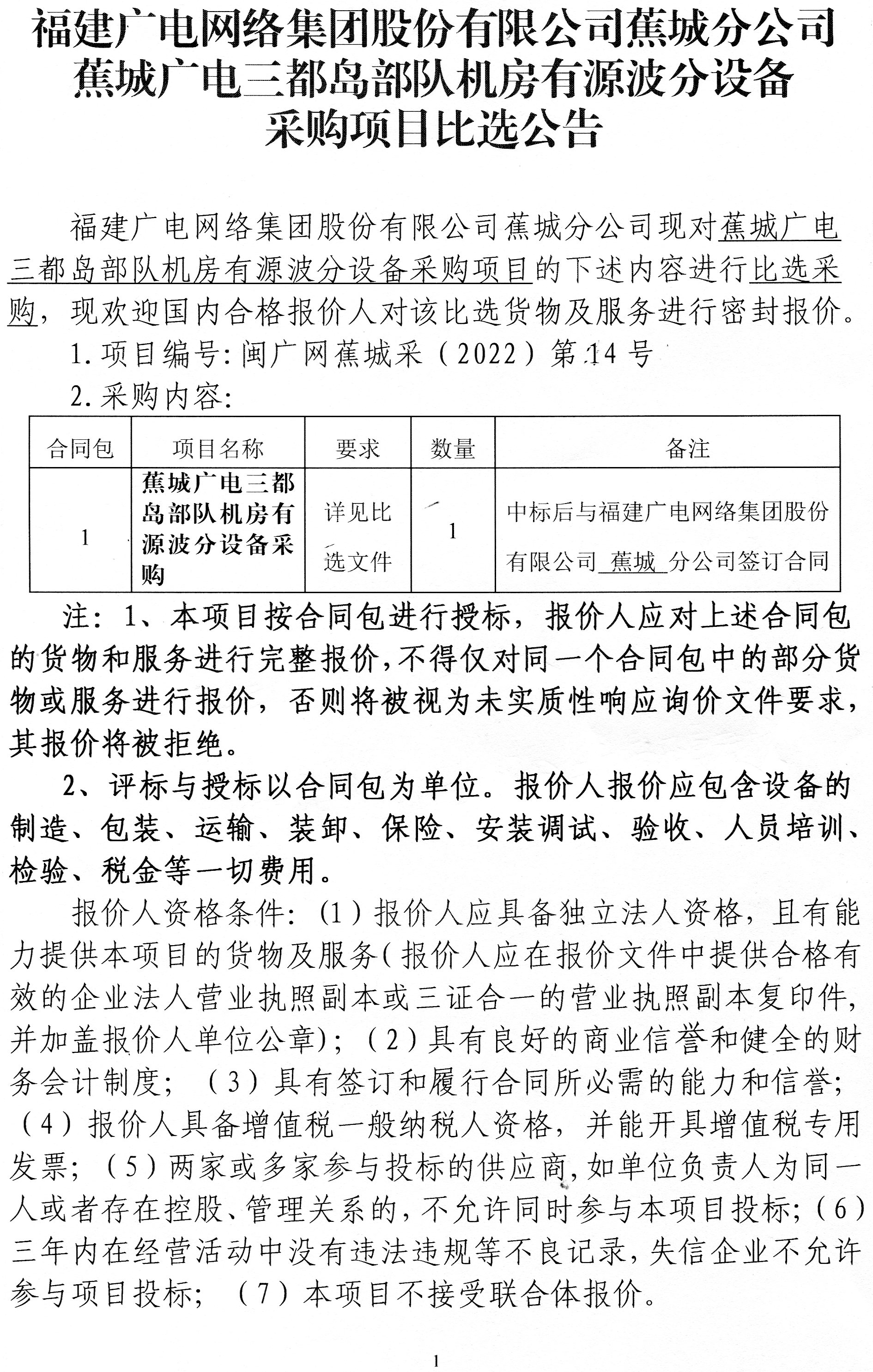 蕉城分公司蕉城廣電三都島部隊機房有源波分設備采購項目比選公告